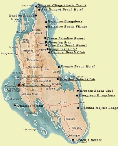 Zanzibar Hotel Location Map